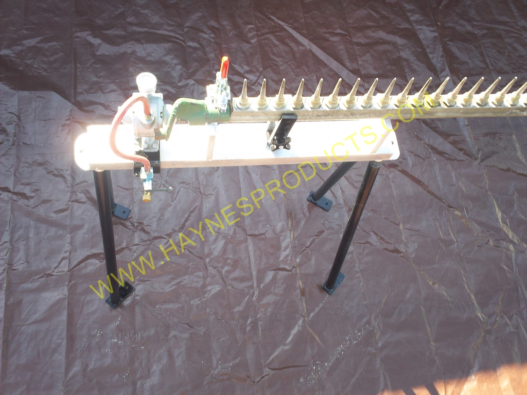 Haynes Commercial Products, LLC’s Air Running Machine was designed to check the spindles on the spindle bar. Put the spindle bar in place on the Air Running Machine, attach the air hose to the Air Running Machine and turn the lever to on to start the air flowing through the Air Running Machine. All spindles should spin freely.